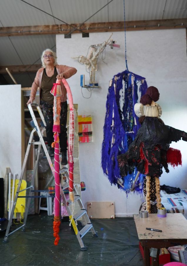 Textiles have always played a role in making paintings, but since 2021 textiles have taken the leading role. I use textile as a material like you use clay or paint, purely as a material to build or paint with. There are references to textile techniques, sewing, knitting, punching, crocheting, twisting rope, but I don’t take the time to make a work entirely according to those techniques, I don’t dabble. Some places I really dive into a detail, then I fondly dabble.