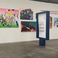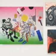 acrylic paint, threads, filled cotton, on sewed canvas