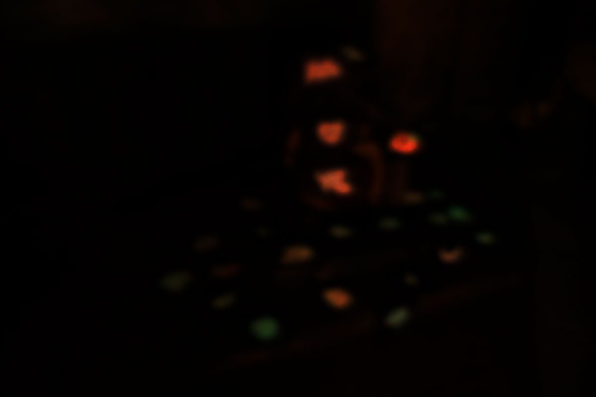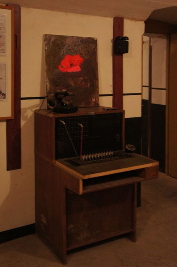 In front of this image 30 paintings of one poppy laying on the machine that is standing in the middle of the room. The poppies are painted with luminous paint. When you step on the switch in the entrance the light goes off. The glowing poppies appear in the dark and become a monument.