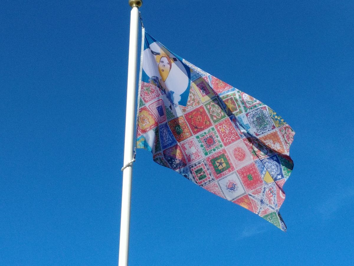 Het is de bedoeling dat de vlaggen en andere kunstuitingen tot 1 september blijven hangen. ,,Tot die datum zijn evenementen verboden’’, verklaart Van ‘t Bosch.