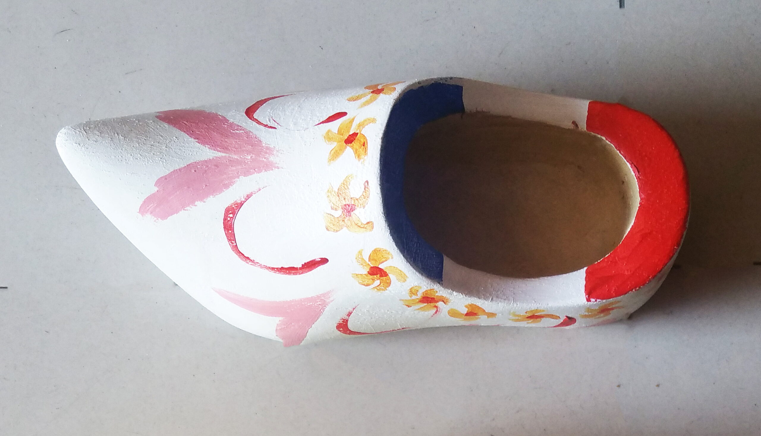 Working with clogs here fits me. To work with these national symbols in our own country would present a different meaning than here in China. To work f.e. with Delft Blue in China would also be different. At first I have to decorate wooden shoes in public. It is funny to paint in this traditional way without exactly knowing how.