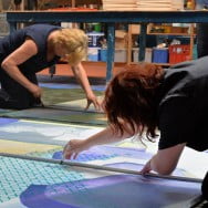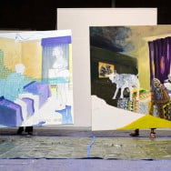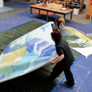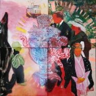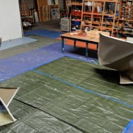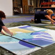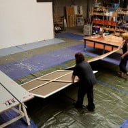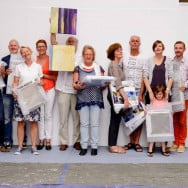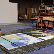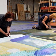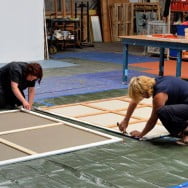 De schilderijen worden tenslotte in 16 delen geknipt en opnieuw opgespannen (40×40 cm) tijdens een snij- en opspan performance op 12 juli 2014 in Weesp.