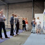 We maken ieder een schilderij van 2 x 2 meter en laten het publiek meebeslissen in het wordingsproces. Dit gebeurt via een poll op Facebook.